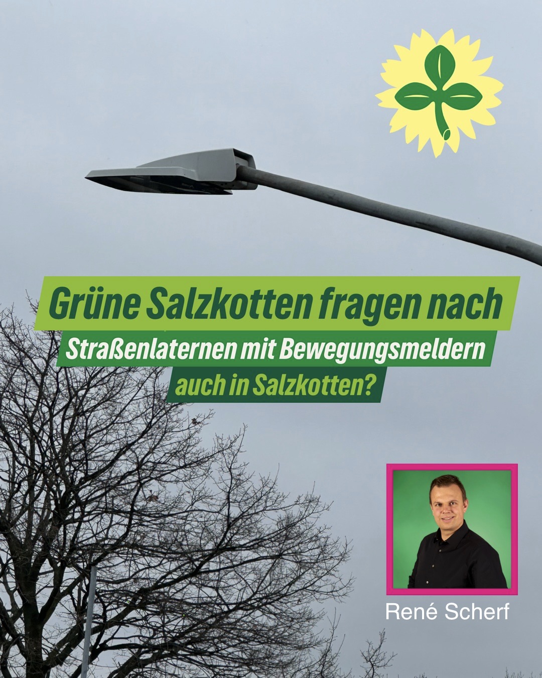 „Angesichts steigender Energiekosten und der Klimaschutzziele müssen Kommunen neue Wege gehen. Eine bedarfsgerechte Beleuchtung kann Sicherheit und Nachhaltigkeit miteinander verbinden“, erklärt Ausschussmitglied Arne Kemper. „Gerade in neuen Baugebieten bietet sich die Chance, innovative Technik von Anfang an mitzudenken.“ In Salzkotten werden Nebenstraßen derzeit nachts teilweise abgeschaltet. Die Grünen sehen in einer dauerhaft gedimmten, sensorgesteuerten Beleuchtung eine mögliche Alternative, die dunkle Phasen vermeidet und zugleich Strom spart. Neben ökologischen Vorteilen soll auch das subjektive Sicherheitsgefühl der Bevölkerung verbessert werden.